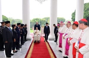 M4M4T.COM, Jakarta – Menteri Pertahanan RI (Menhan RI) Prabowo Subianto mendampingi Presiden Joko Widodo dalam kunjungan Pemimpin Tertinggi Gereja Katolik Sedunia dan Kepala Negara Vatikan, Yang Teramat Mulia Sri Paus Fransiskus pada hari Rabu (4/9/2024), Istana Merdeka, Jakarta.